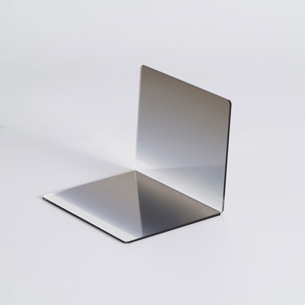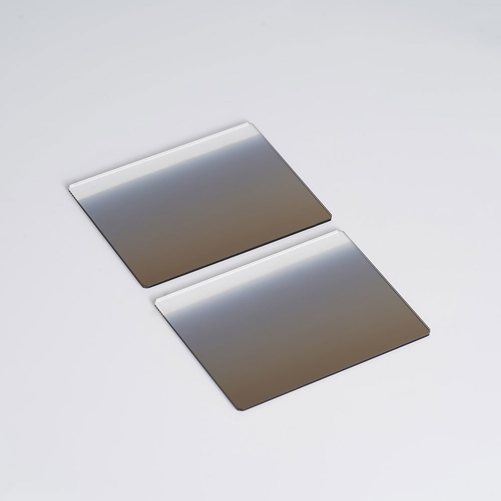 EMC易倍光电生产的渐变方片为 性能极其稳定的环保光学玻璃,双面精密,研磨抛光,渐变过程平稳过渡,色彩均匀,镜片双面防水,防油污,易清洁,特殊光学镀膜,提升影像素质,最暗处3档减光,超低偏色,全高清。
